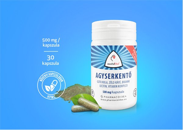 Brahmi-, Zöld Kávé-, és Gotu Kola kivonat Lecitinnel, C- és B vitamin komplexszel a fokozott szellemi teljesítményért. Javítja a memóriát és az agyműködést, támogatja a normál mentális és pszichológiai funkciókat, az immunrendszer egészséges működését. Hozzájárul a fáradtságérzés csökkenéséhez és a sejtek oxidatív stresszel szembeni védekezéséhez. Ajánlott fokozott szellemi tevékenységet végzők számára.